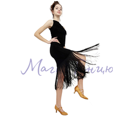 Спідниця латина чорна з довгою бахромою з шортиками, для бально-спортивних танців